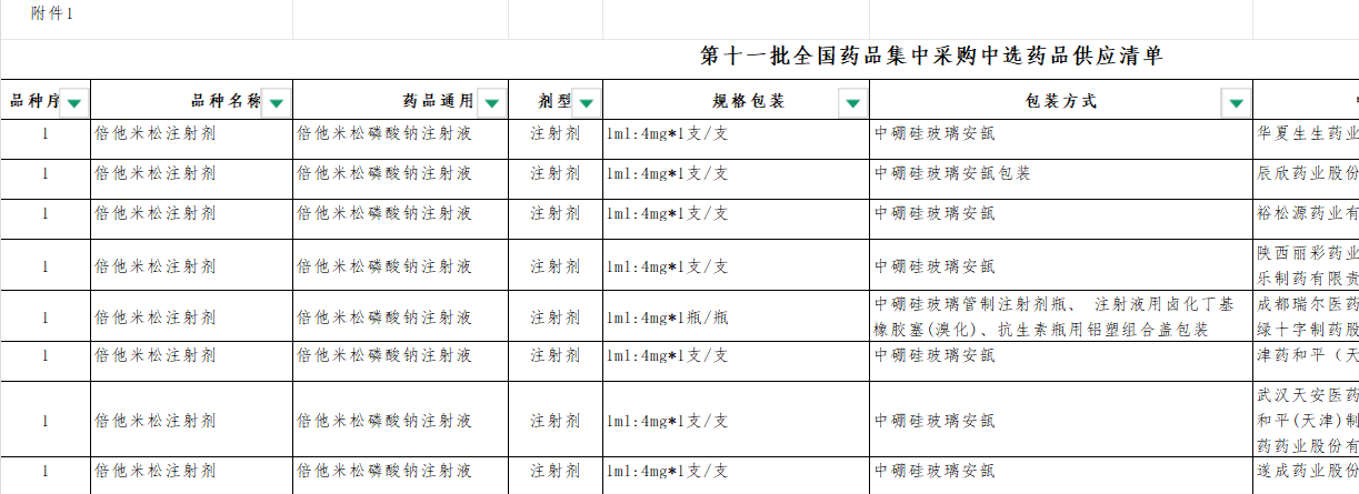 西藏自治区-第十一批全国药品集中采购中选药品供应清单附件