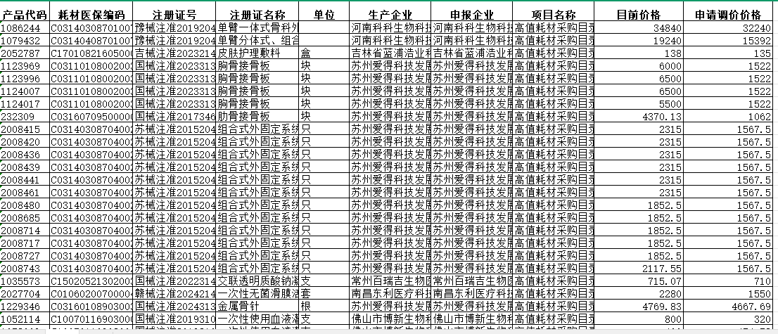 河南省医用耗材产品调整价格信息表260206