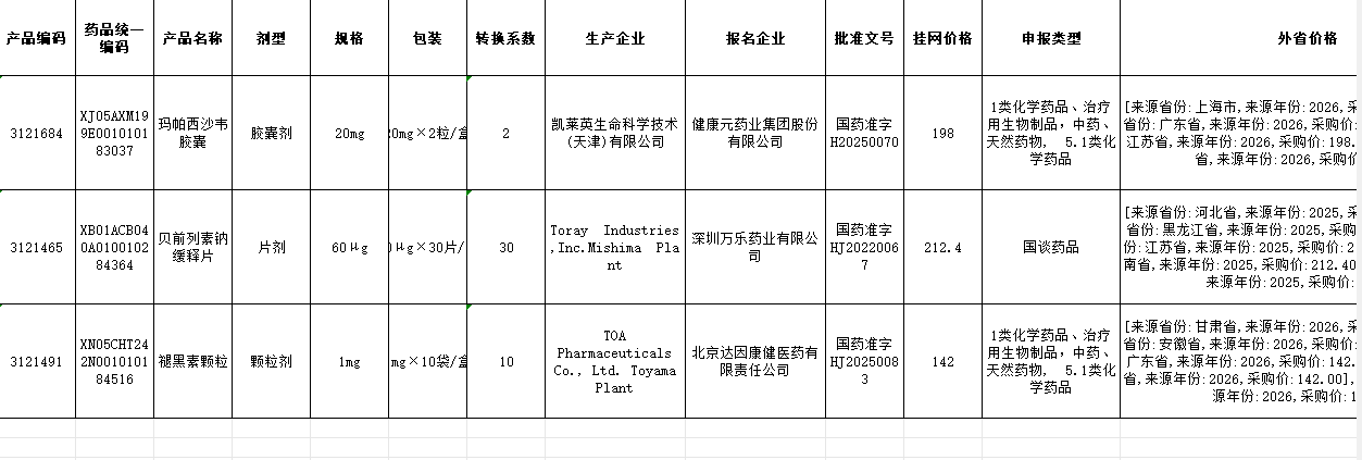 河南省2026年2月2日-2026年2月8日绿色通道申报药品清单
