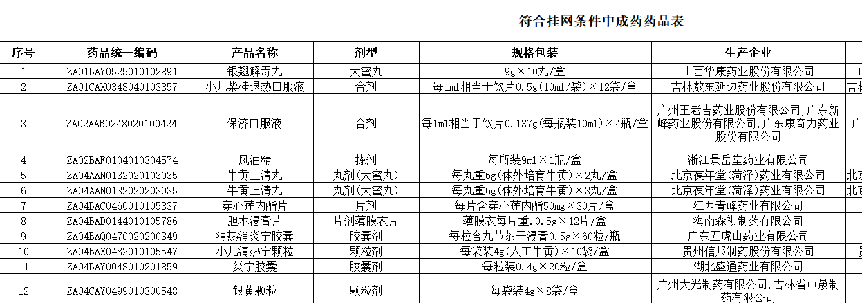 河北省符合挂网条件中成药药品表附件