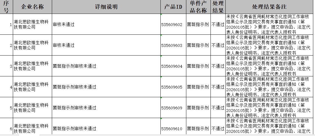 云南省医疗器械挂网申诉质疑处理结果260211附件