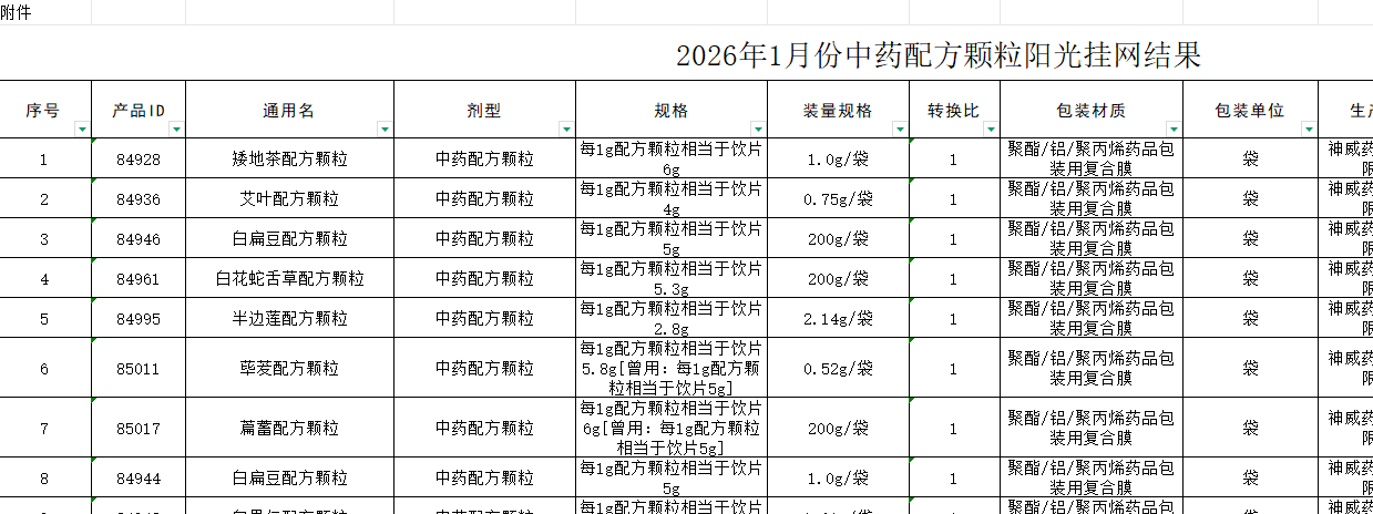 宁夏2026年1月份中药配方颗粒阳光挂网结果附件