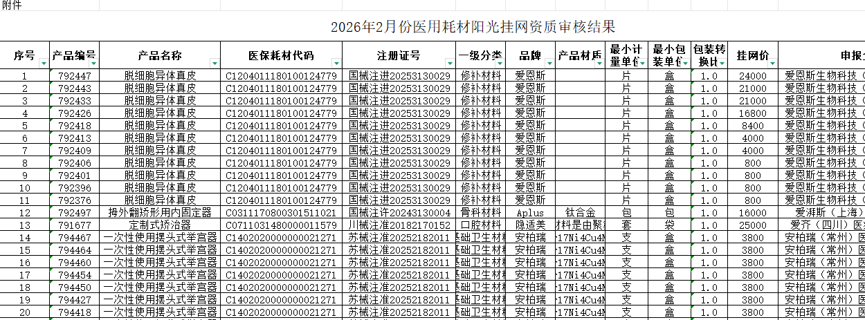 宁夏2026年2月份医用耗材阳光挂网资质审核结果附件