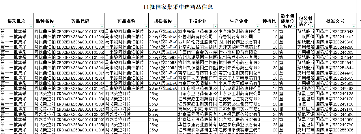 海南省—第十一批国家组织药品集中采购中选品种供应清单附件