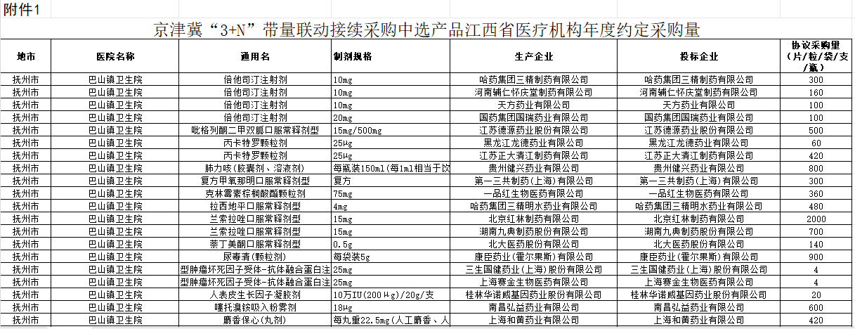 京津冀“3+N”带量联动接续采购中选产品江西省医疗机构年度约定采购量附件