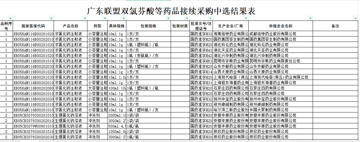 内蒙古自治区广东联盟双氯芬酸等药品接续采购中选药品附件