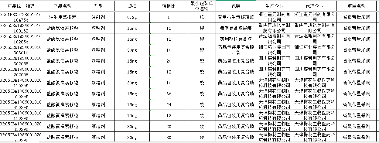 内蒙古自治区省际联盟集采中选药品中与本次执行中选药品重合列表附件