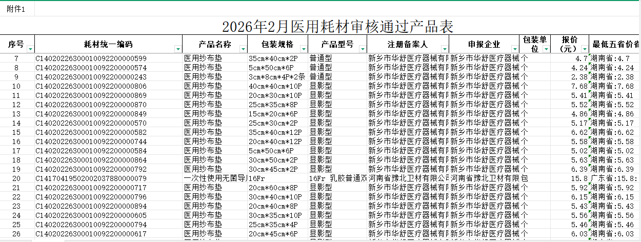 广西壮族自治区2026年2月医用耗材审核通过产品表附件