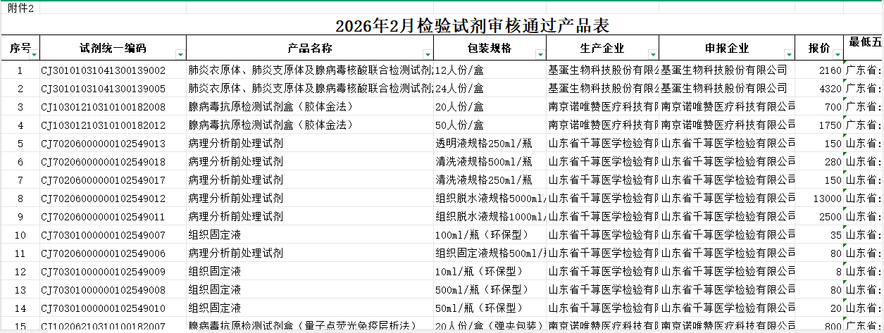广西壮族自治区2026年2月体外诊断试剂审核通过产品表附件