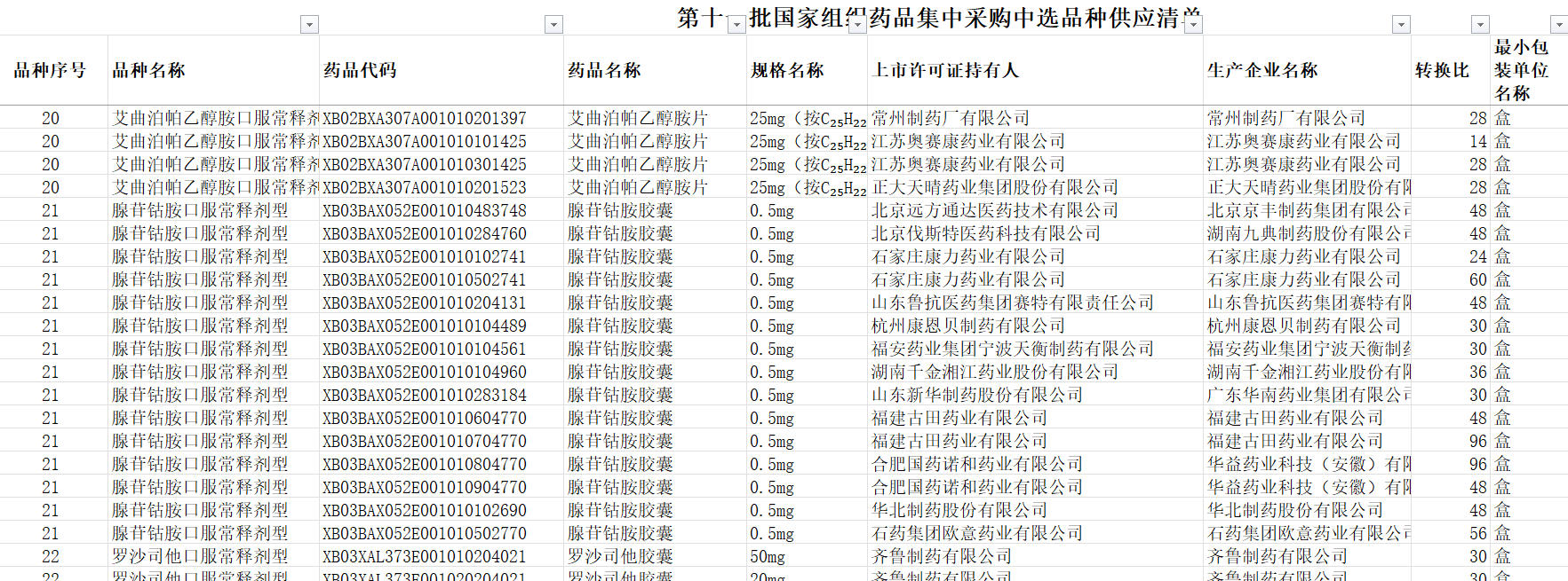 第十一批国家组织药品集中采购中选品