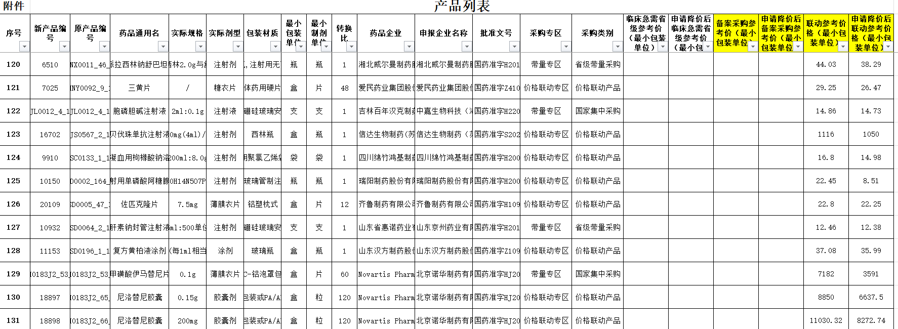 川药招〔2026〕33号产品列表