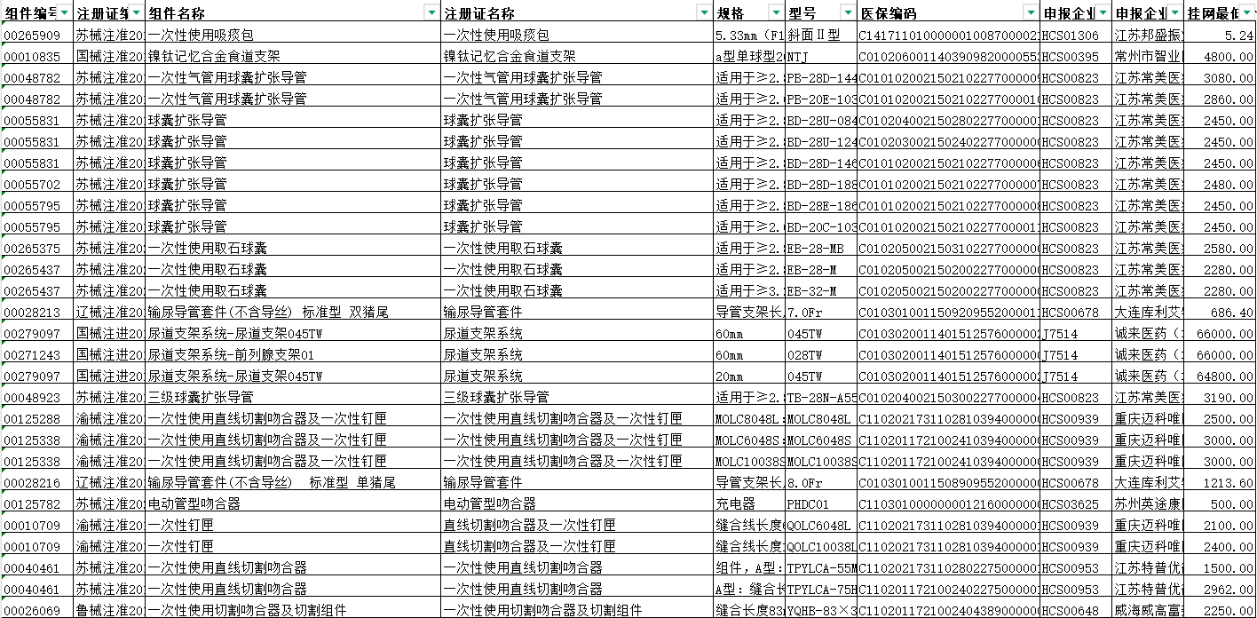 湖北省已维护医保编码产品信息表(2026年第3期)