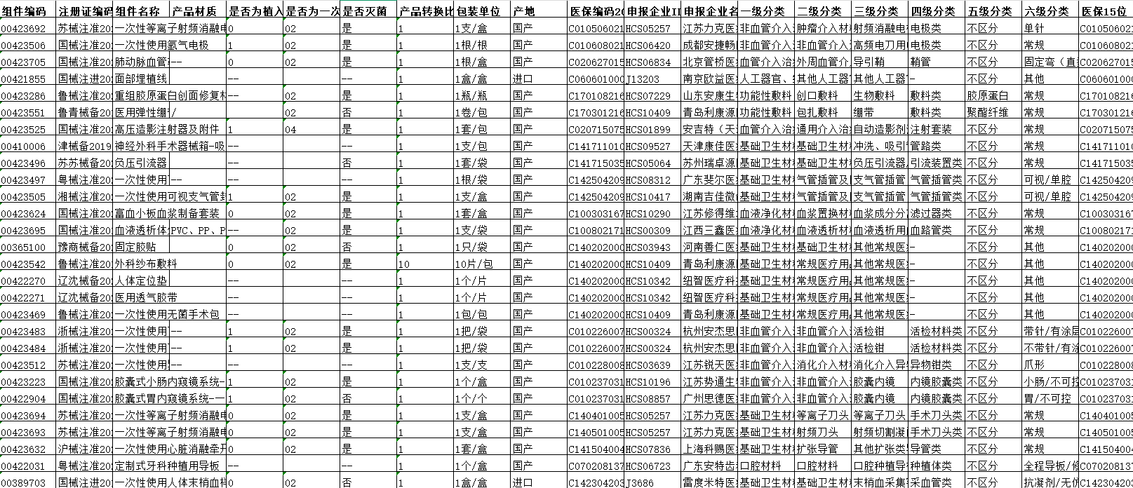 文书类别:医疗器械/目录表格/其他