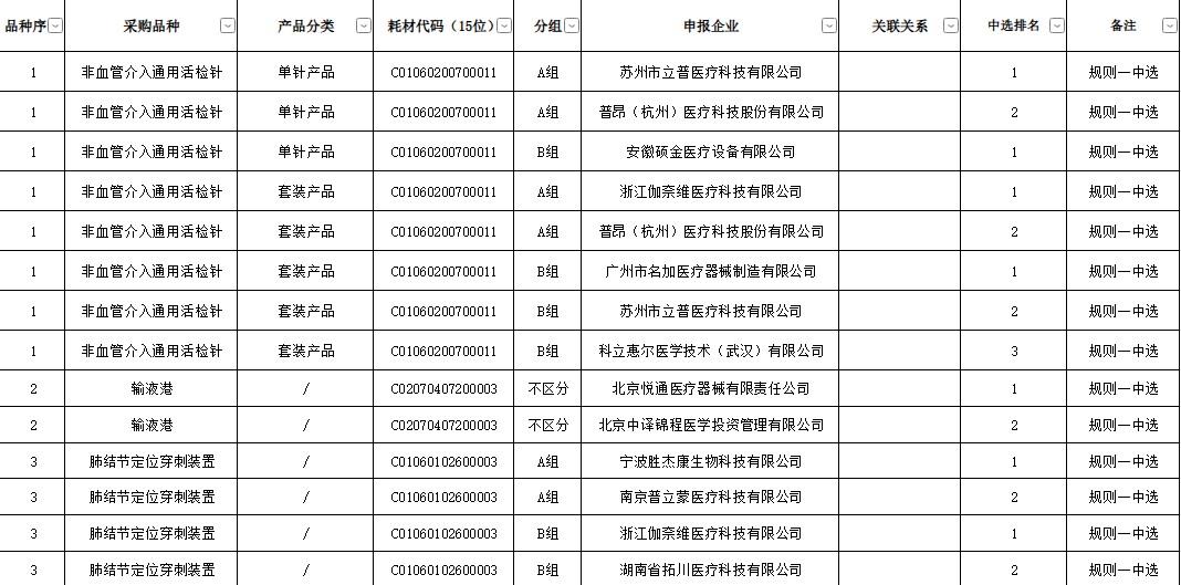 河北省非血管介入通用活检针等25种医用耗材集中带量采购中选结果