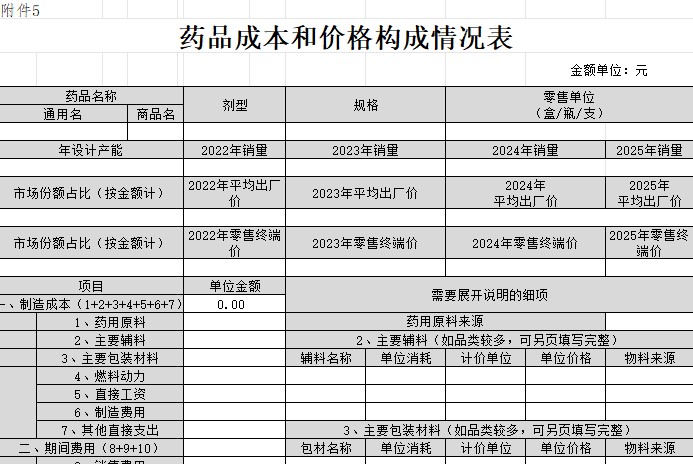 湖南省药品成本和价格构成情况表