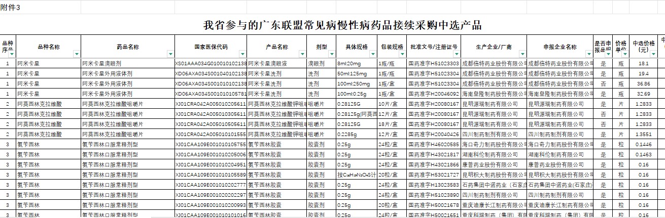 河南省2026年参与的广东联盟双氯芬酸等药品接续采购中选产品