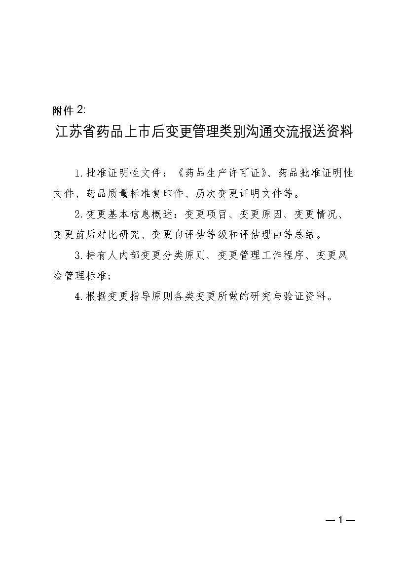 附件2:江苏省药品上市后变更管理类别沟通交流报送资料