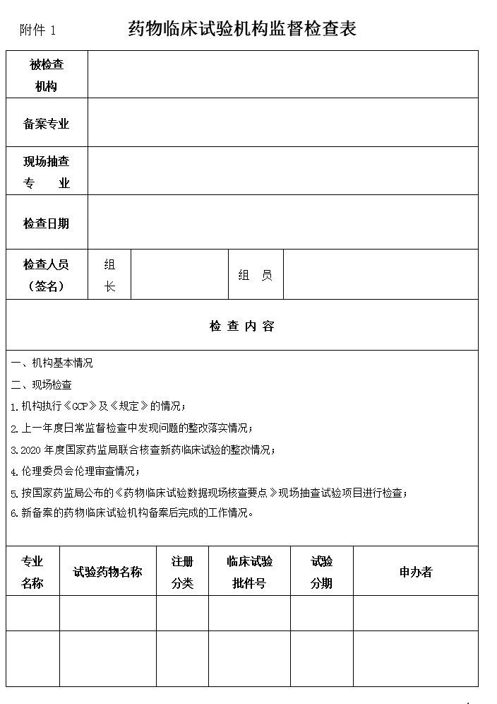 为贯彻省委办公厅、省政府办公厅《关于深化审评审批制度改革鼓励药品医疗器械创新的实施意见》(厅字〔2018〕66号),落实省药监局《组织开展“我为群众办实事”活动暨药品安全风险隐患排查“百日行动”实施方案》,依据《药物临床试验质量管理规范》(以下简称《GCP》)和《药物临床试验机构管理规定》(以下简称《规定》)的有关要求,省药监局决定对我省药物临床试验机构开展监督检查。现将有关事项通知如下: