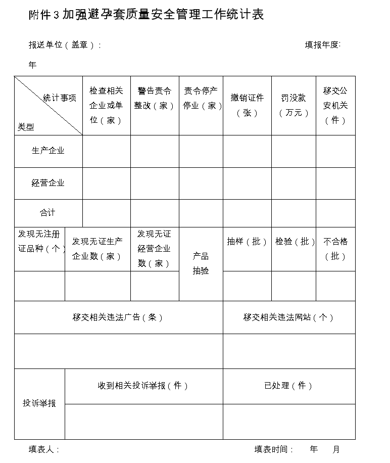 附件3:《加强避孕套质量安全管理工作统计表》.doc