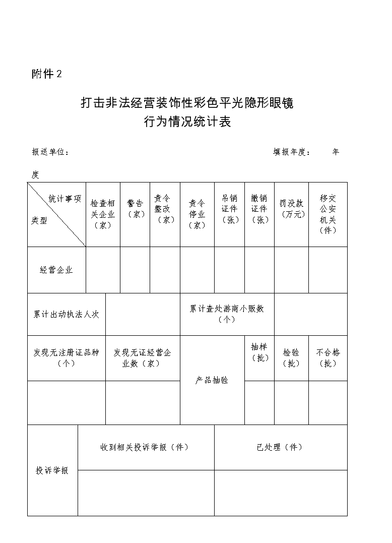附件2:《打击非法经营装饰性彩色平光隐形眼镜行为情况统计表》.doc