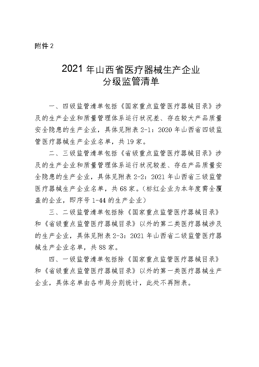 附件2:2021年山西省医疗器械生产企业分级监管清单.doc