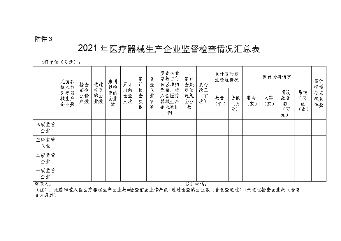 附件3:2021年医疗器械生产企业监督检查情况汇总表.doc