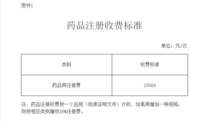 附件:1.药品注册收费标准