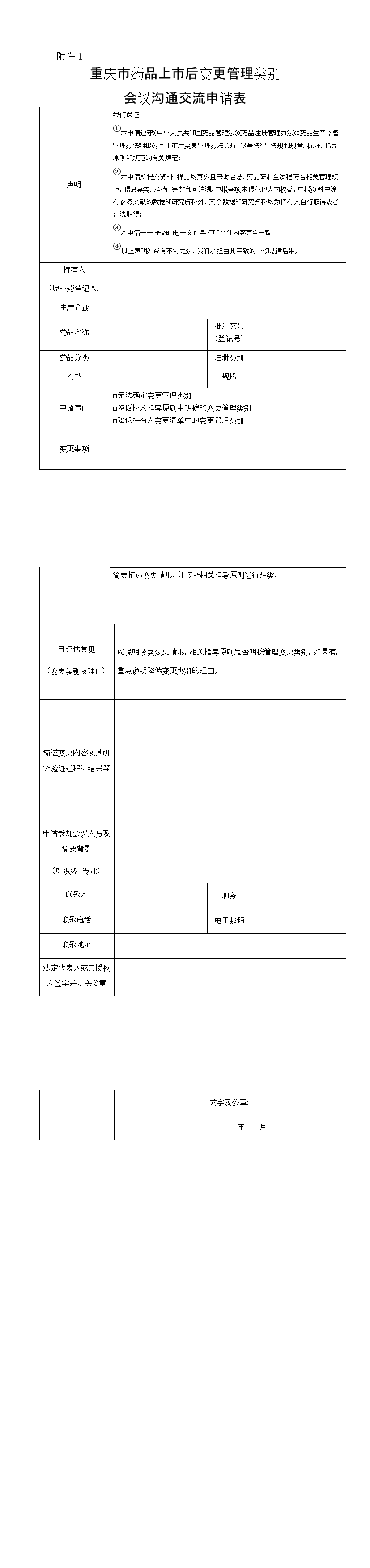附件:1.重庆市药品上市后变更管理类别会议沟通交流申请表.docx