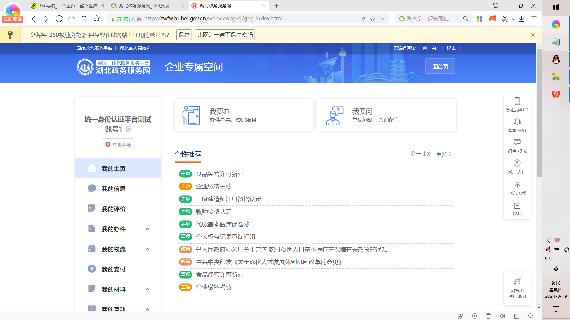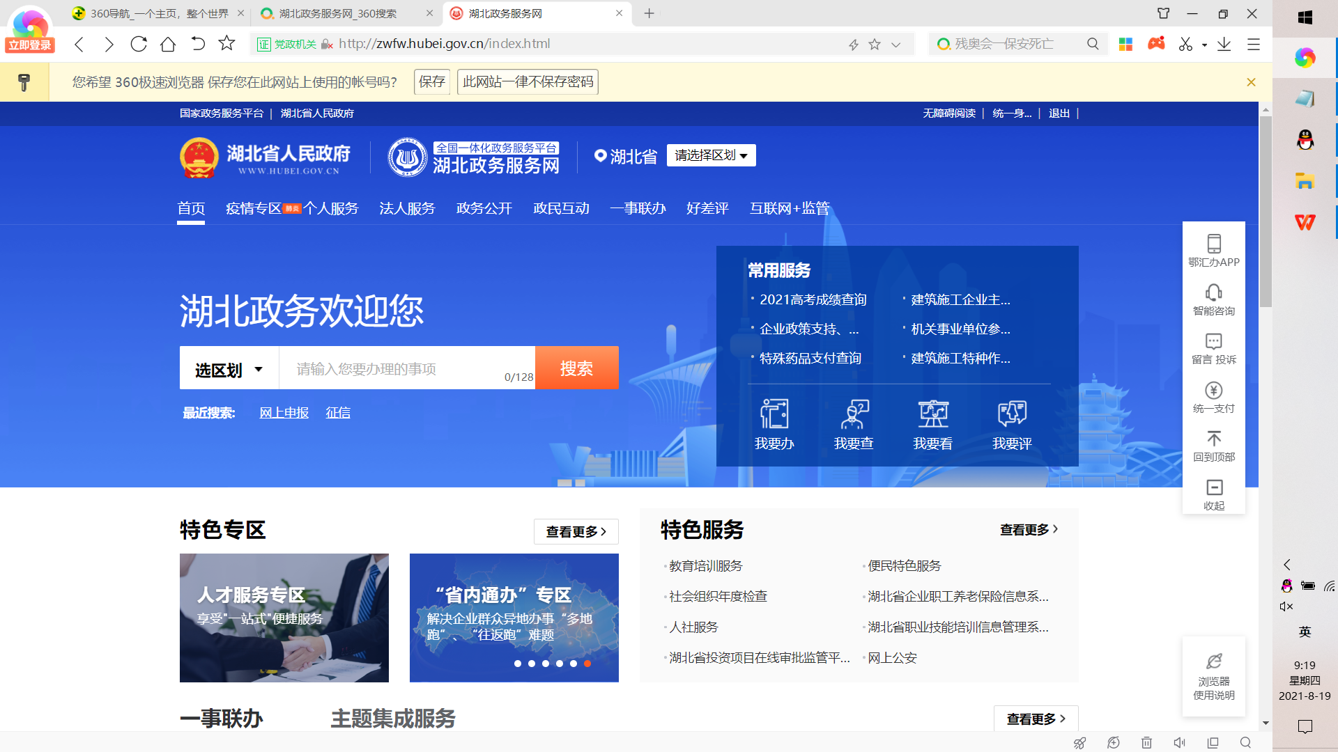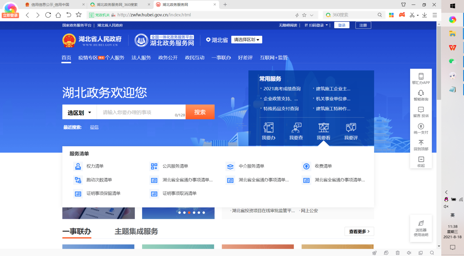 1、搜索湖北政务服务网,进入湖北政务服务网官网首页