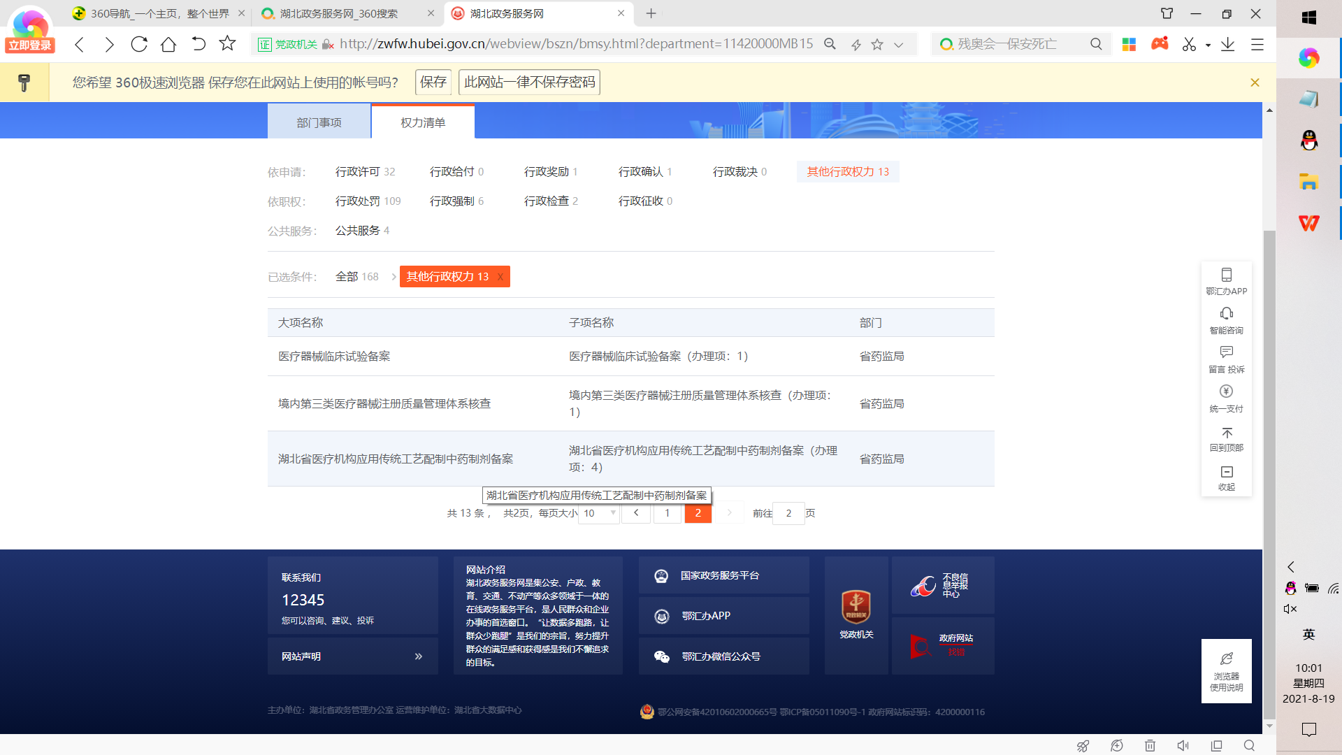 6、在下面大项名称中找到对应“湖北省医疗机构应用传统工艺配置中药制剂备案”