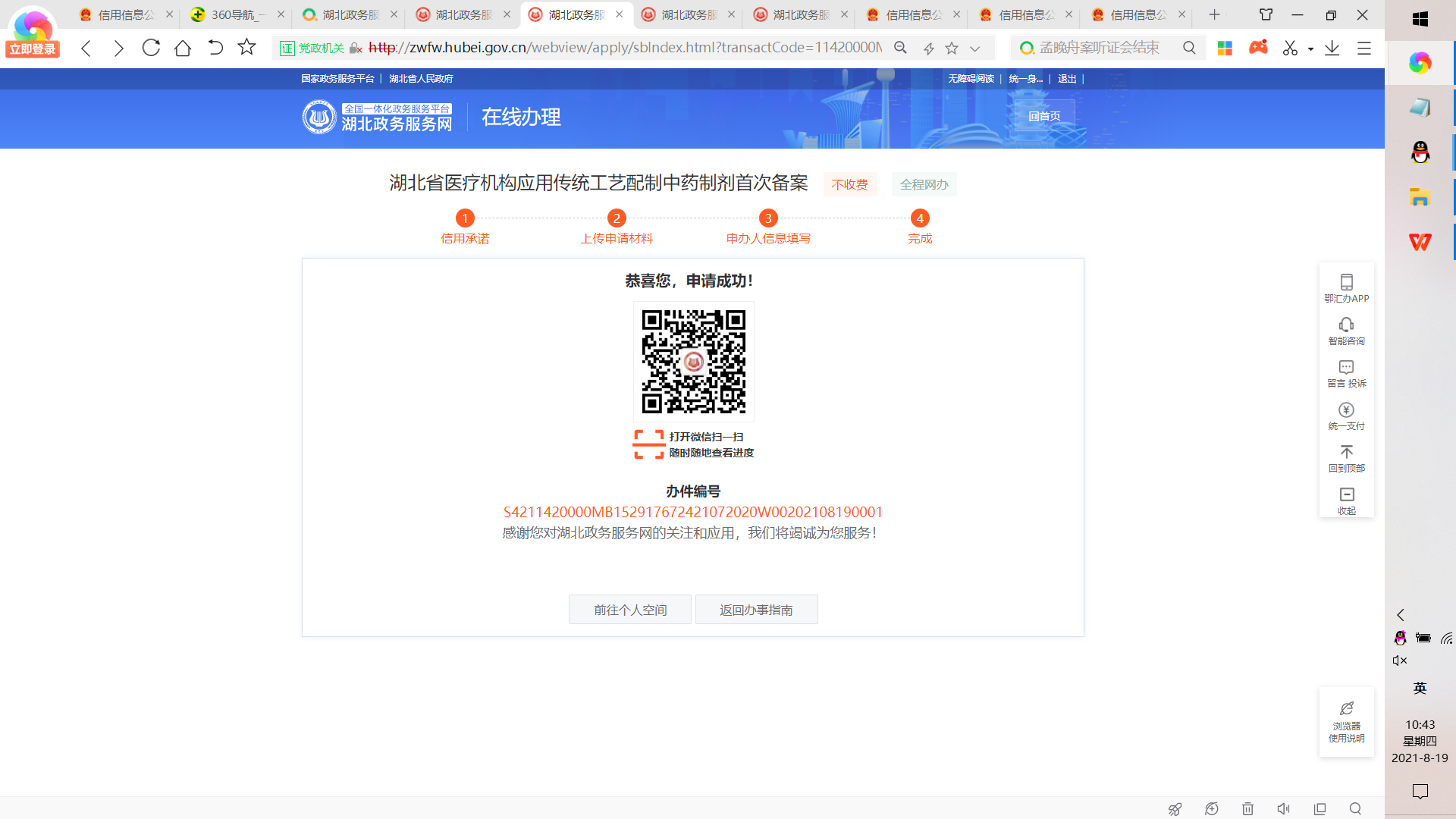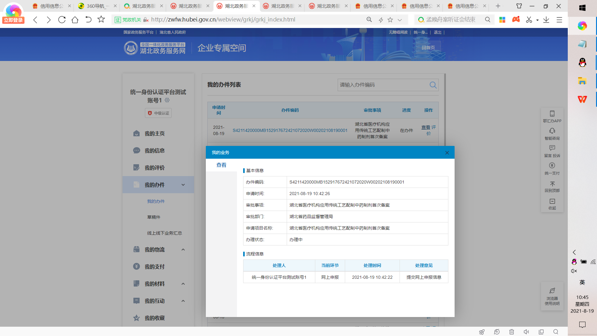15、返回个人空间,在我的办件中可以查看到办件信息