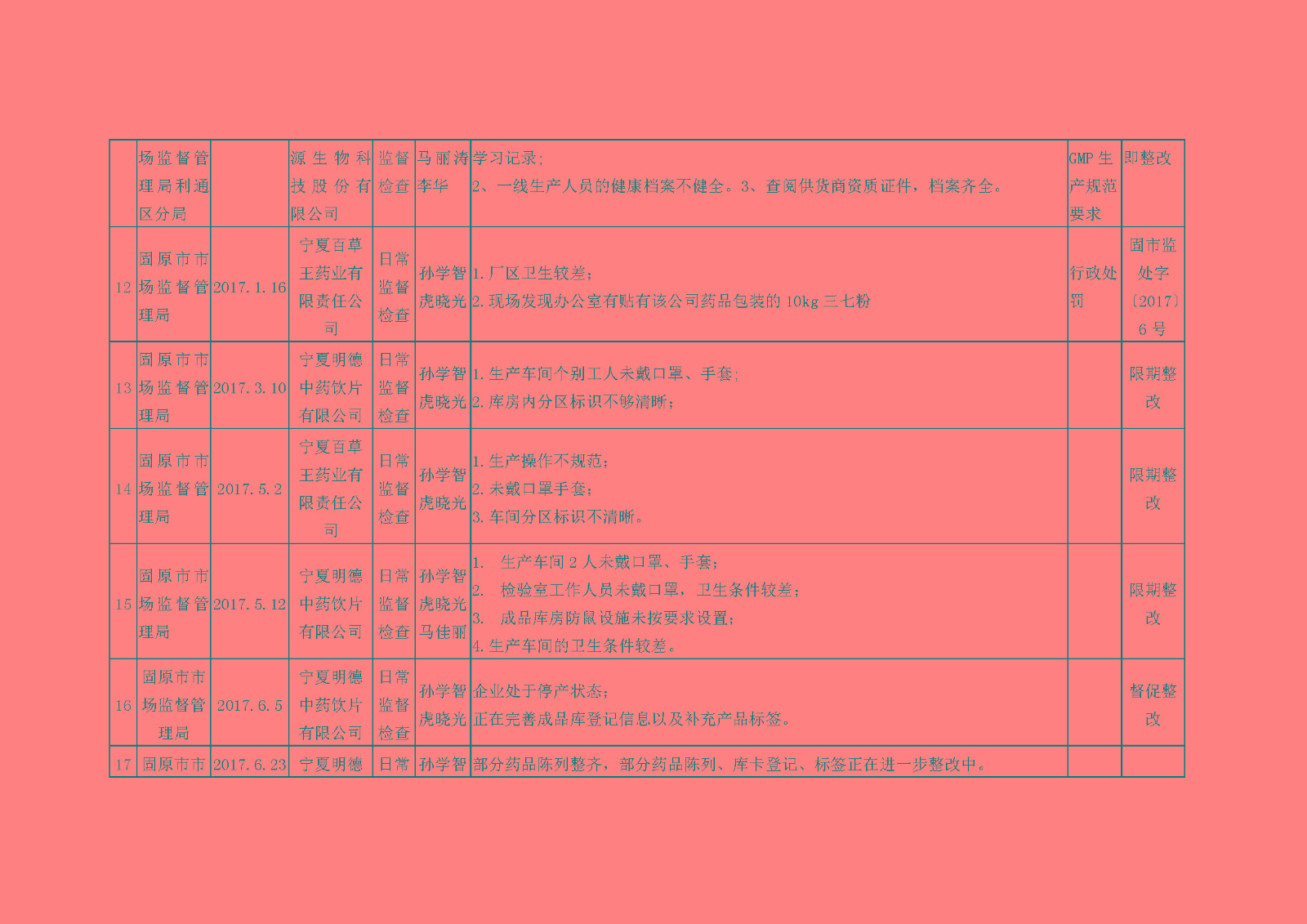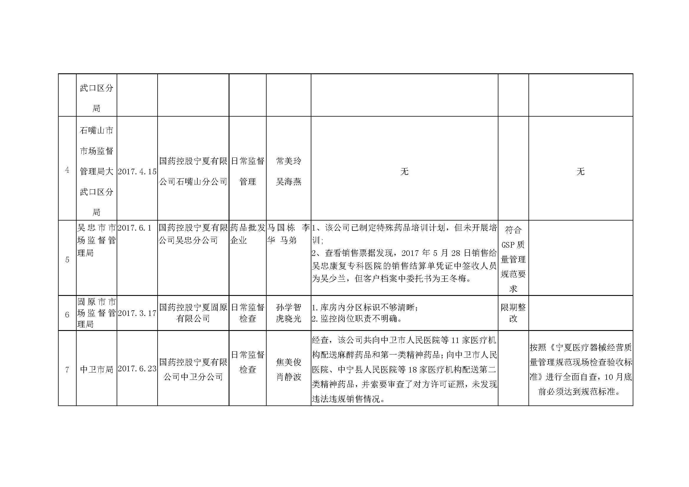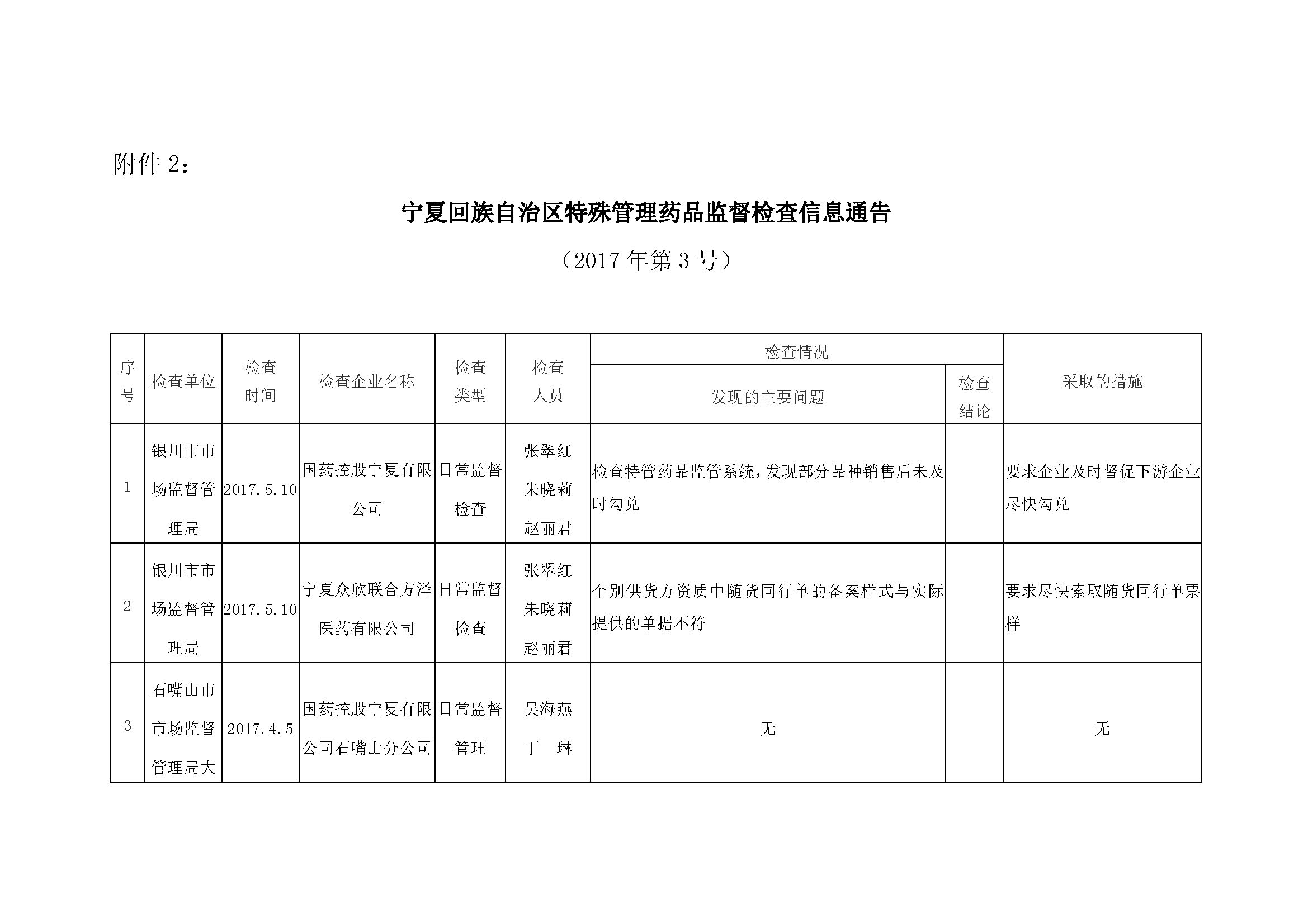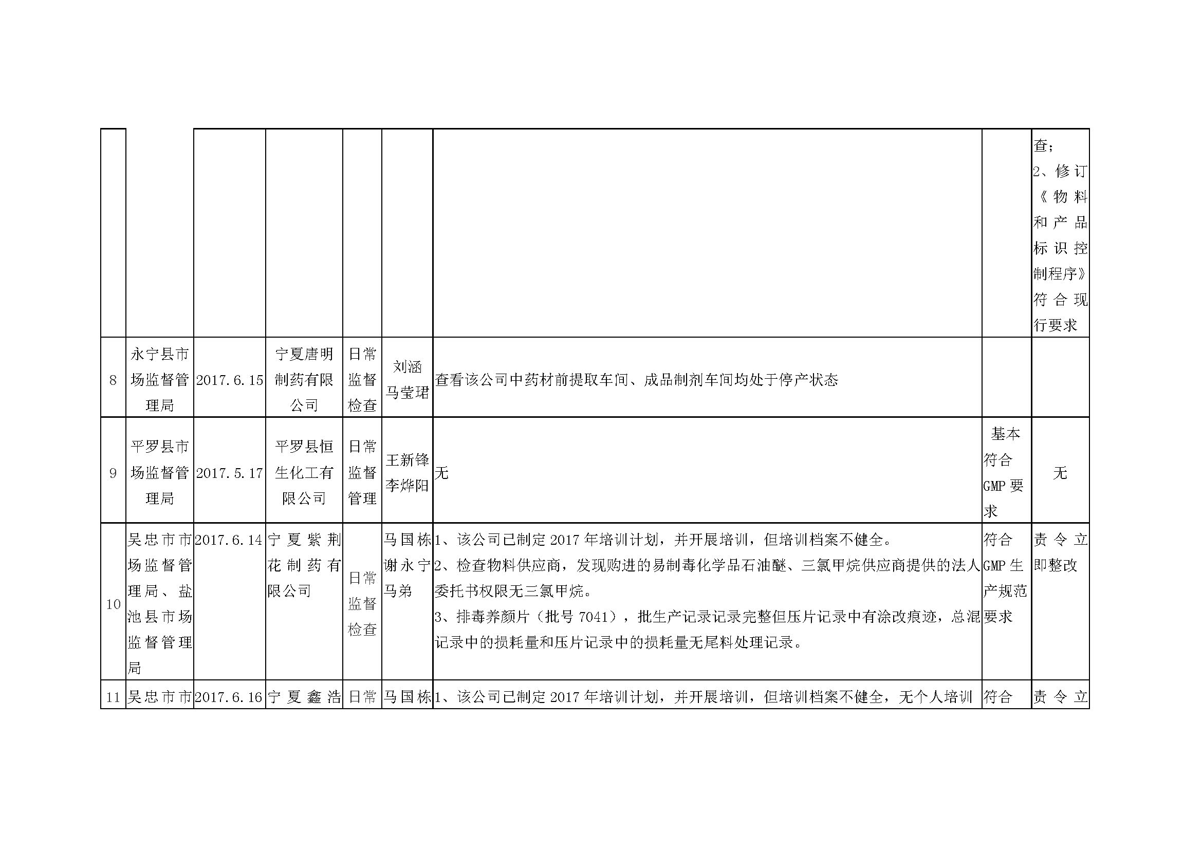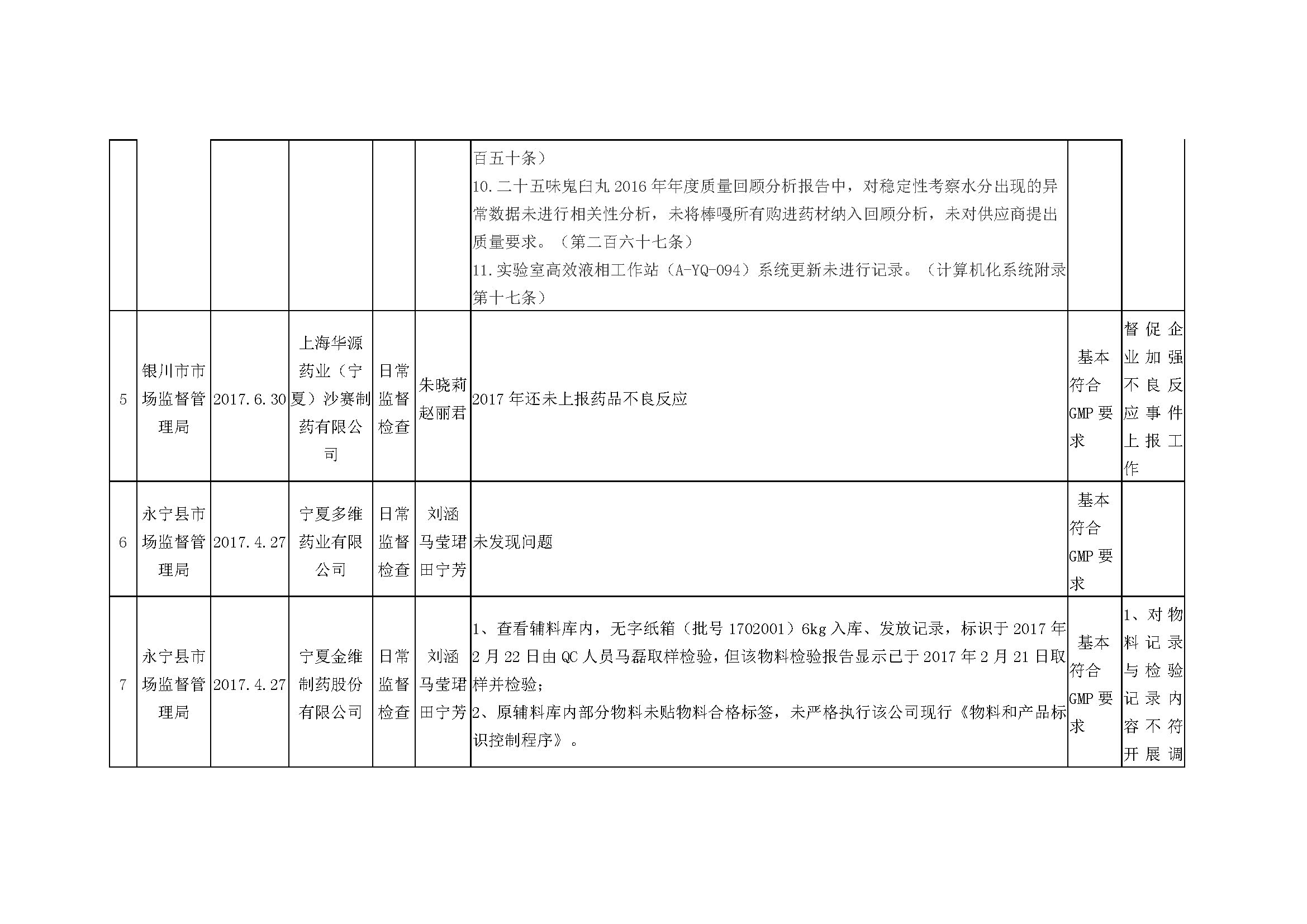 根据《关于建立药品医疗器械监督检查信息报告公开制度的通知》(宁食药监〔2016〕76号)要求,近期,各级食药监管部门及自治区食品药品审评认证中心对部分药品生产企业、特殊管理药品区域性批发企业开展了监督检查,现将检查信息予以通告。