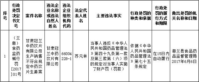 皋兰局行政处罚信息公开201706
