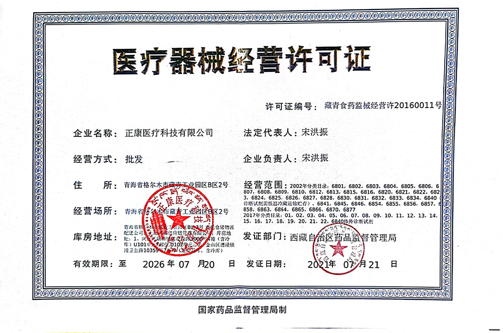 医疗器械经营许可证编号 | 藏青食药监械经营许20160011号 | 藏青食药监械经营许20160011号 |