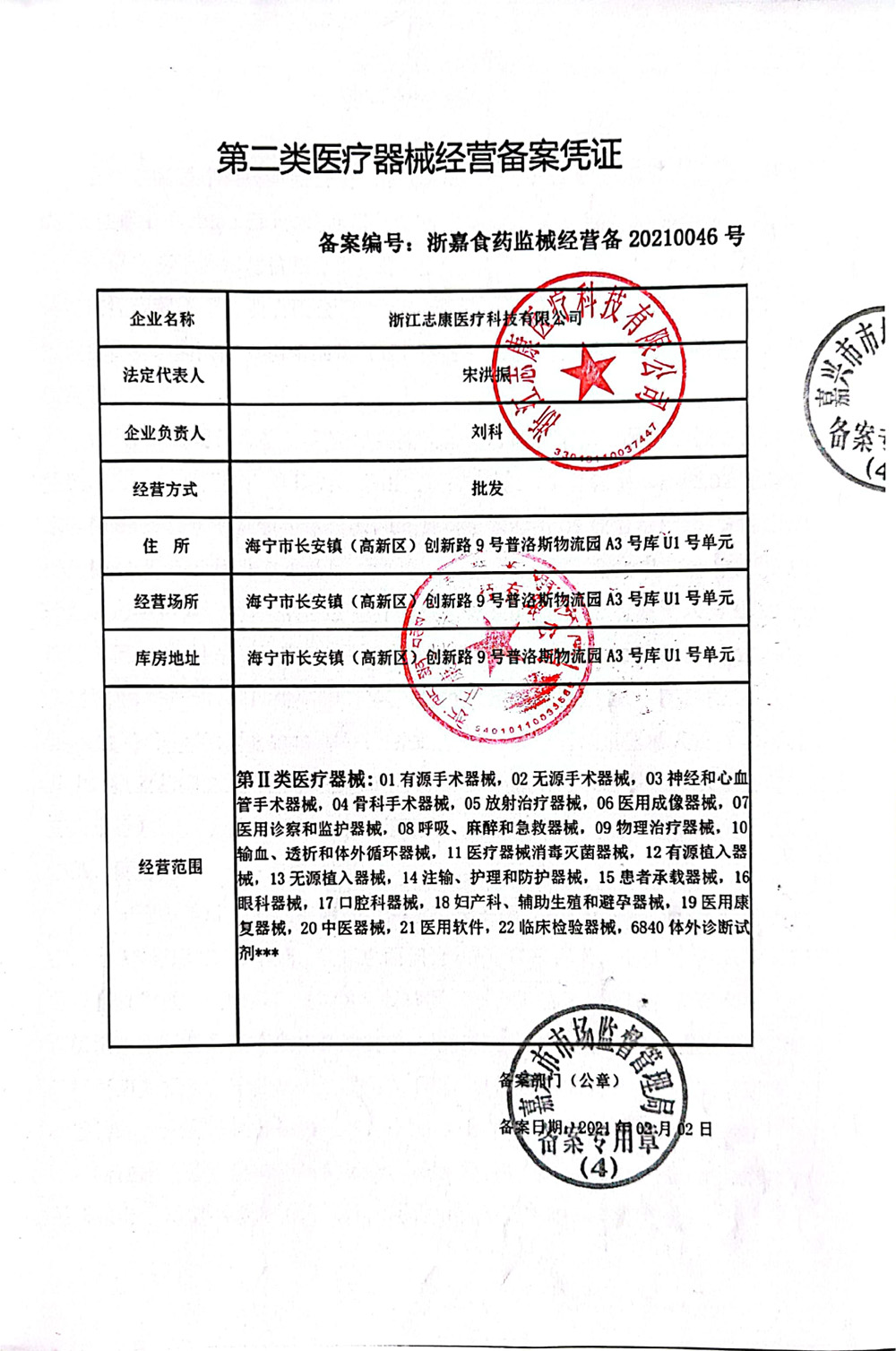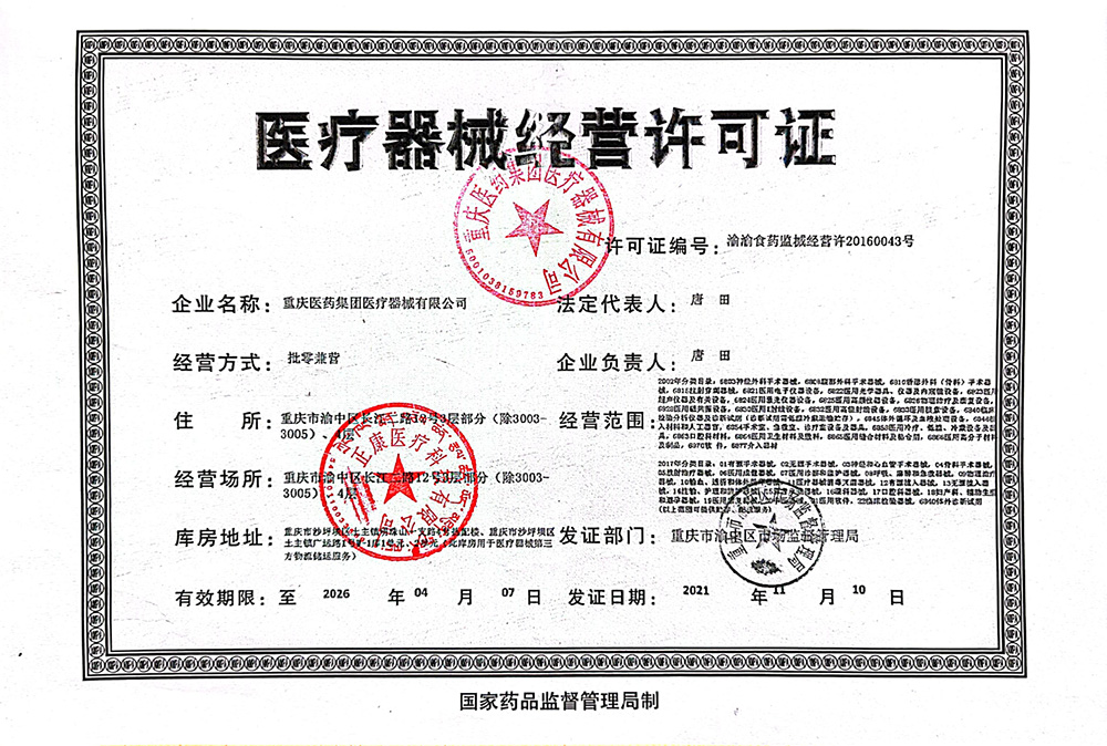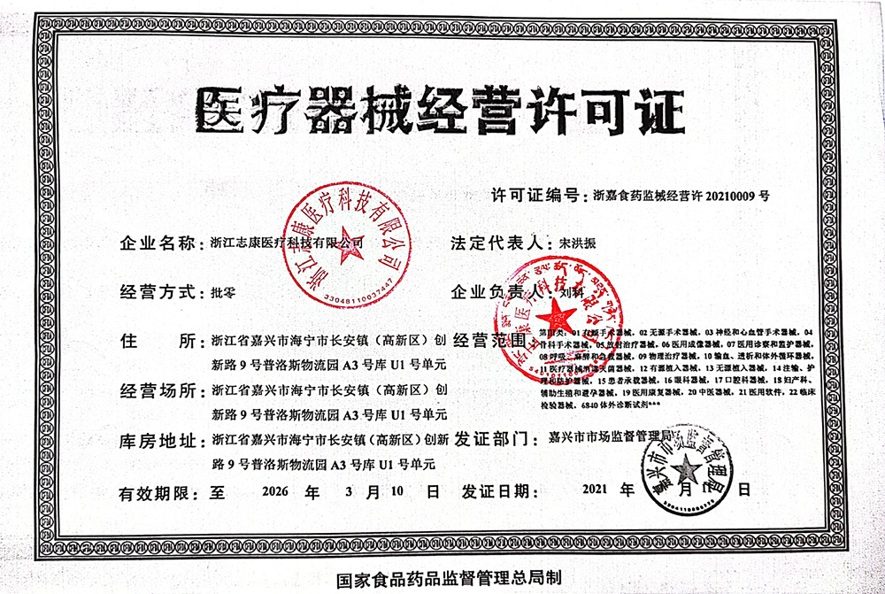 医疗器械经营许可证编号 | 浙嘉食药监械经营许20210009号 | 渝渝食药监械经营许20160043号 |