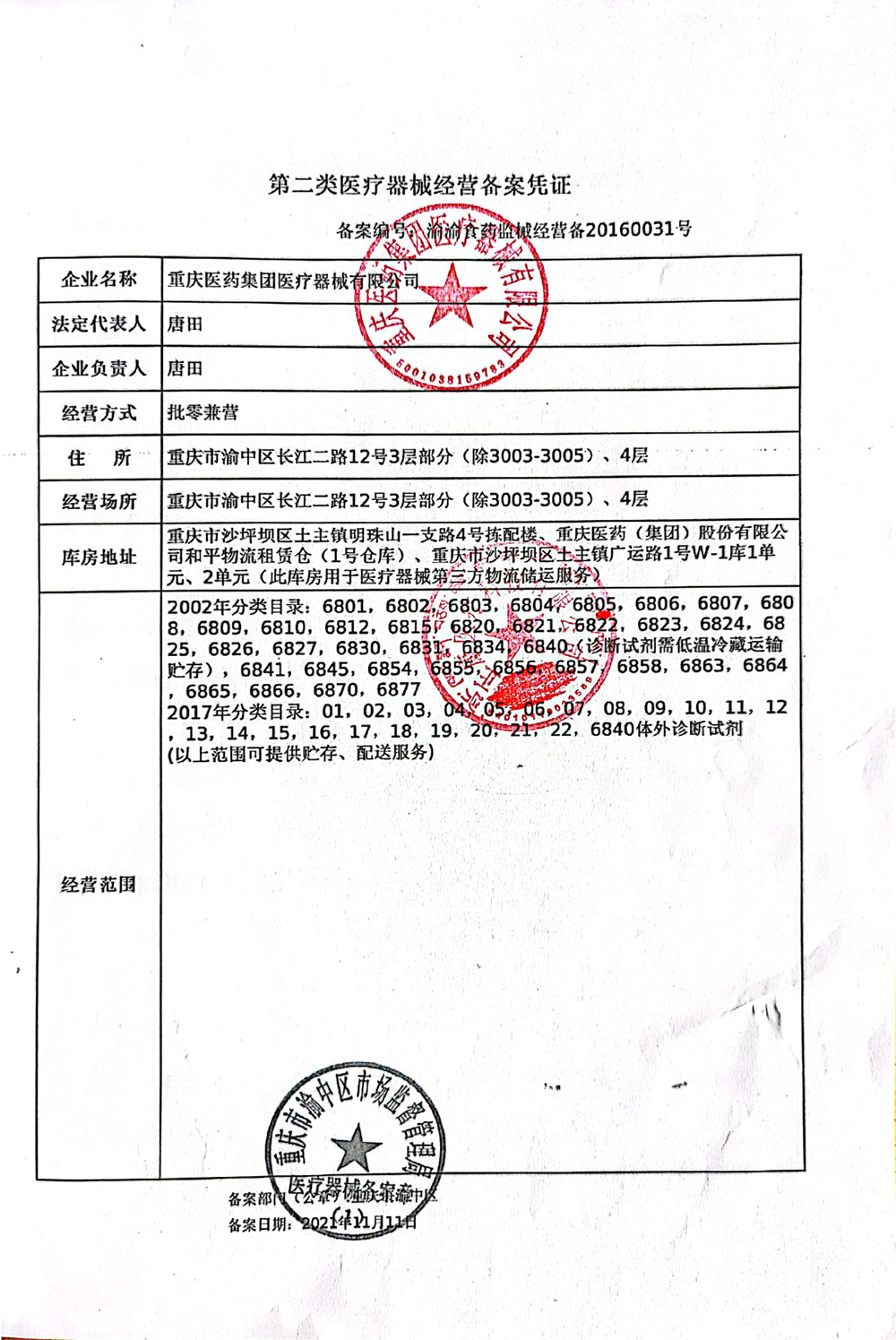 第三方医疗器械经营备案凭证编号 | 浙嘉食药监械经营备20210046号 | 渝渝食药监械经营备20160031号 |