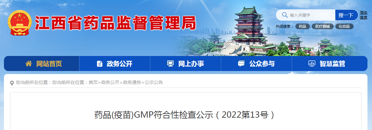 根据《中华人民共和国药品管理法》《药品生产监督管理办法》《转发关于贯彻实施《药品生产质量管理规范(2010年修订)》的通知》《关于进一步深化“放管服”改革推进政务服务便民化的通知》(赣食药监法[2018]26号)的相关规定,我中心组织检查组对江西浩然生物制药有限公司实施现场检查,现予以公示。公示期为2022年4月8日至2022年17月(10个自然日),请社会各界予以监督。