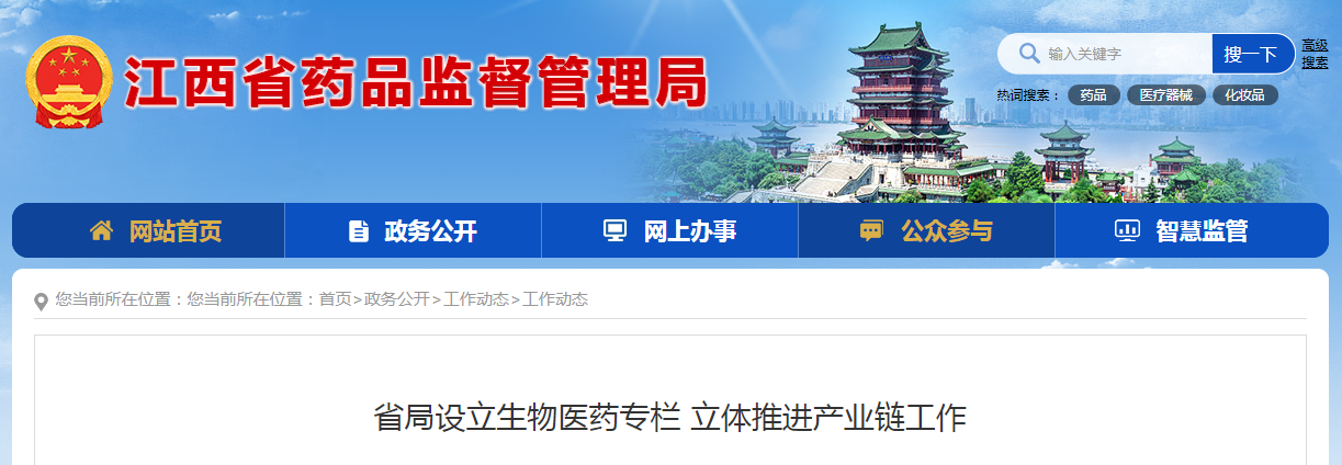 4月25日,省药监局工作网站增设了“生物医药产业链链长制工作”专题专栏。专题专栏分为四个版块。一是产业动态,分享各生物医药产业链成员单位工作动态。二是“四图五清单”,用于公布生物医药产业发展政策、规划、产业分布图;招商引资情况等。三是产业发展,用于公示生物生物医药重点项目建设、取得的工作成效和省生物医药产业链办理问题进展。四是通过问卷调查形式,建立问题常态化收集机制,面对面向省内生物医药企业收集“急难愁盼”问题,同时协调省生物医药产业链成员单位限时办结,促进政府企业双向互动协同发力。