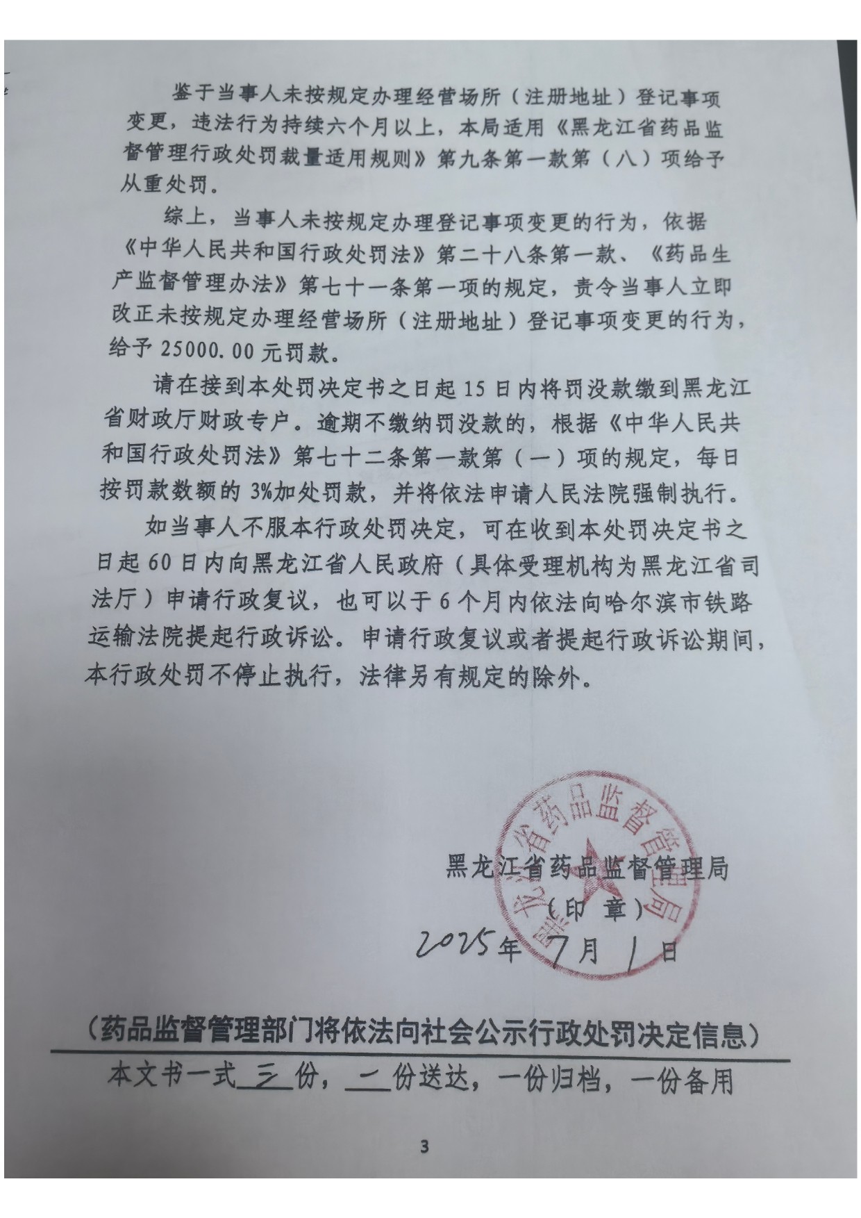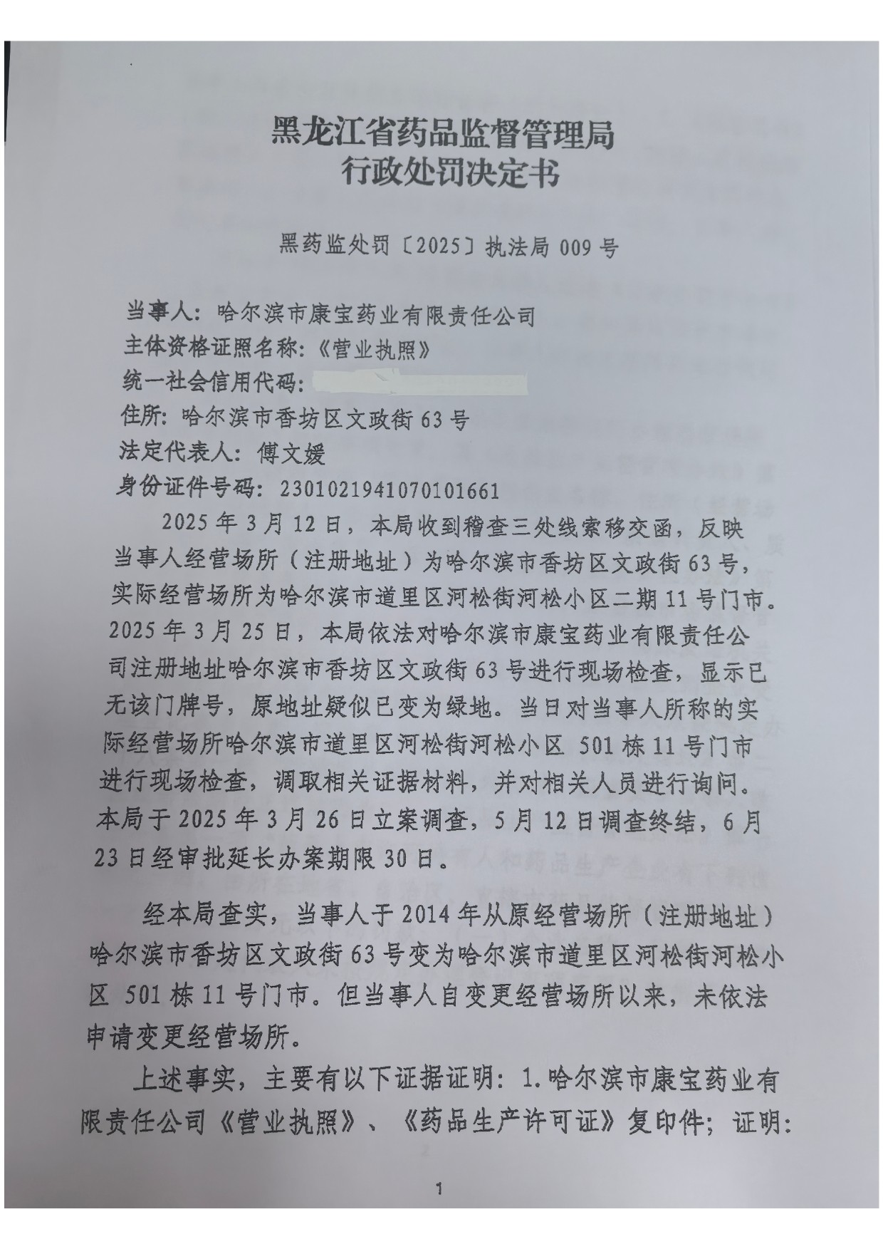 哈尔滨市康宝药业有限责任公司未按规定办理登记事项变更的行为违反了《药品生产监督管理办法》第十五条第三款的规定,依据《中华人民共和国行政处罚法》第二十八条第一款、《药品生产监督管理办法》第七十一条第(一)项予以处罚。