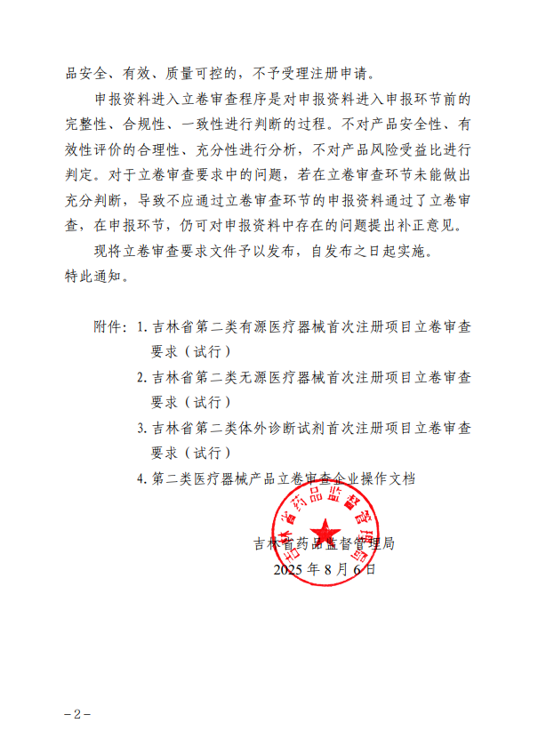 附件2-吉林省第二类无源医疗器械首次注册项目立卷审查要求