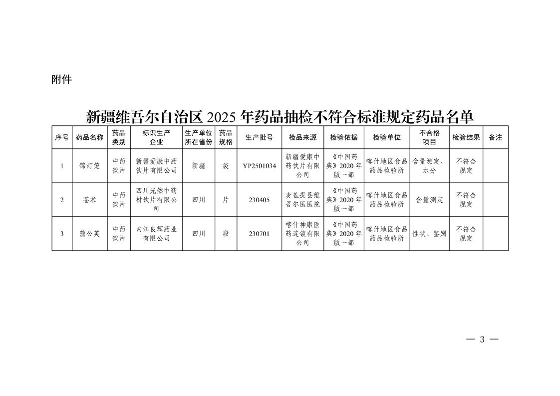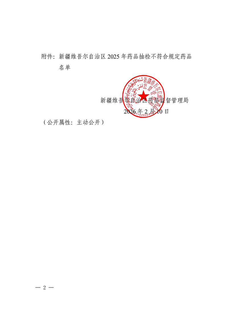 新疆维吾尔自治区药品质量公告(2026年第1期)
